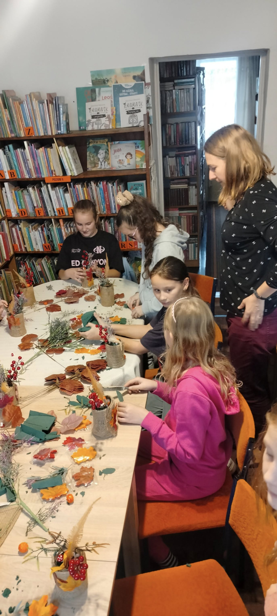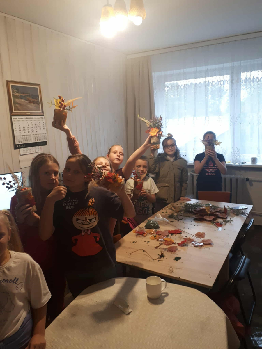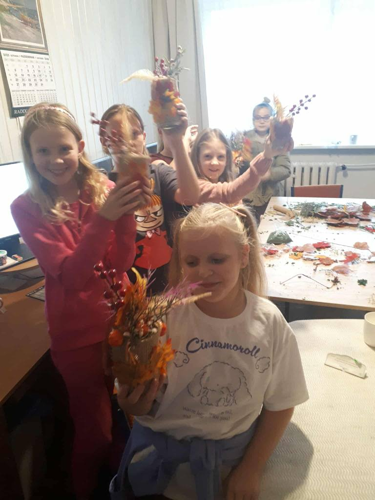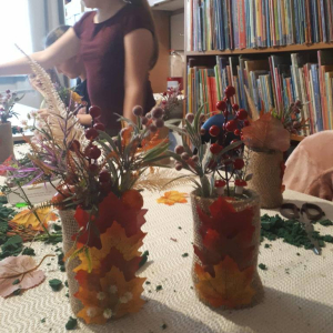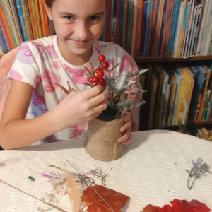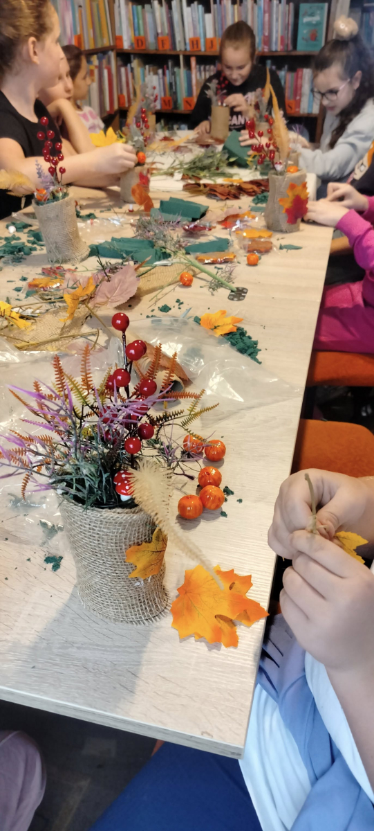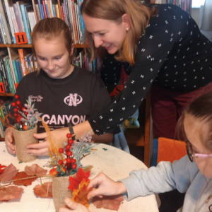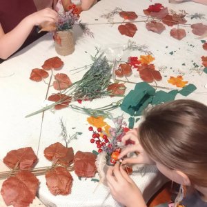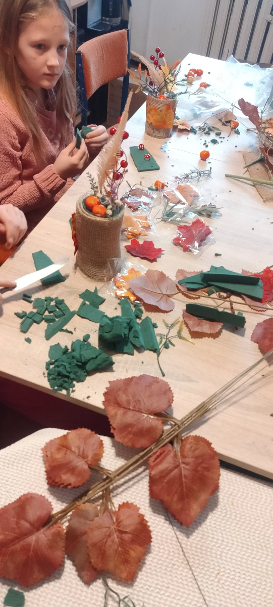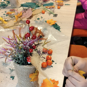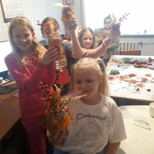 Na dzisiejszych warsztatach dzieci wykazały się niesamowitą kreatywnością, samodzielnie wykonały jesienne stroiki, które można wykorzystać do wystroju wnętrz, nadając im wyjątkowy klimat. Dziękujemy uczestnikom za udział oraz wspólny, twórczy czas. Do zobaczenia na kolejnych,odkrywczych zajęciach.
