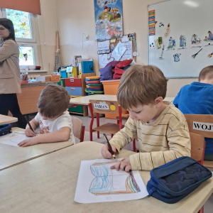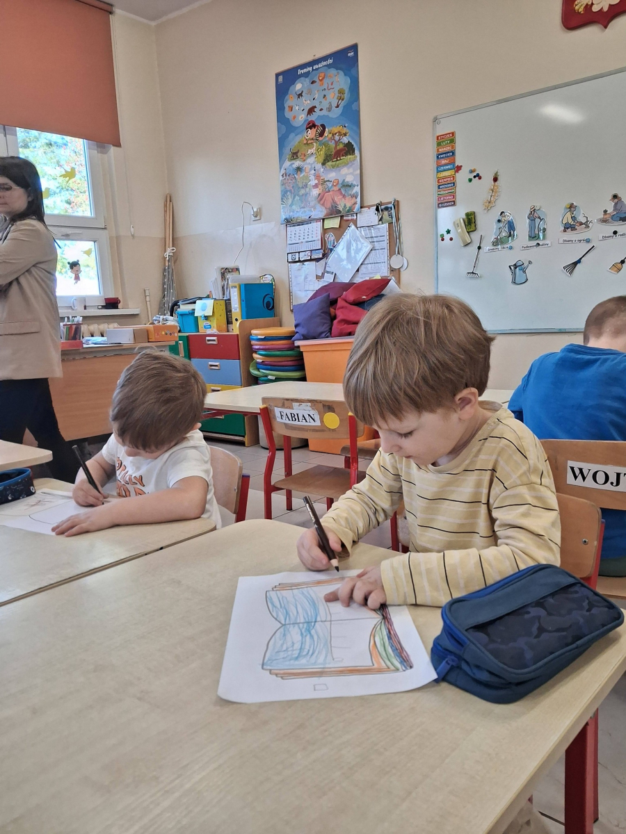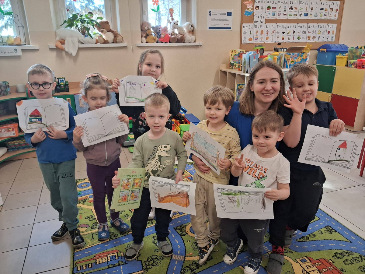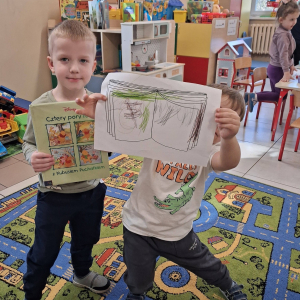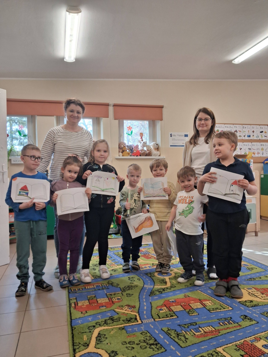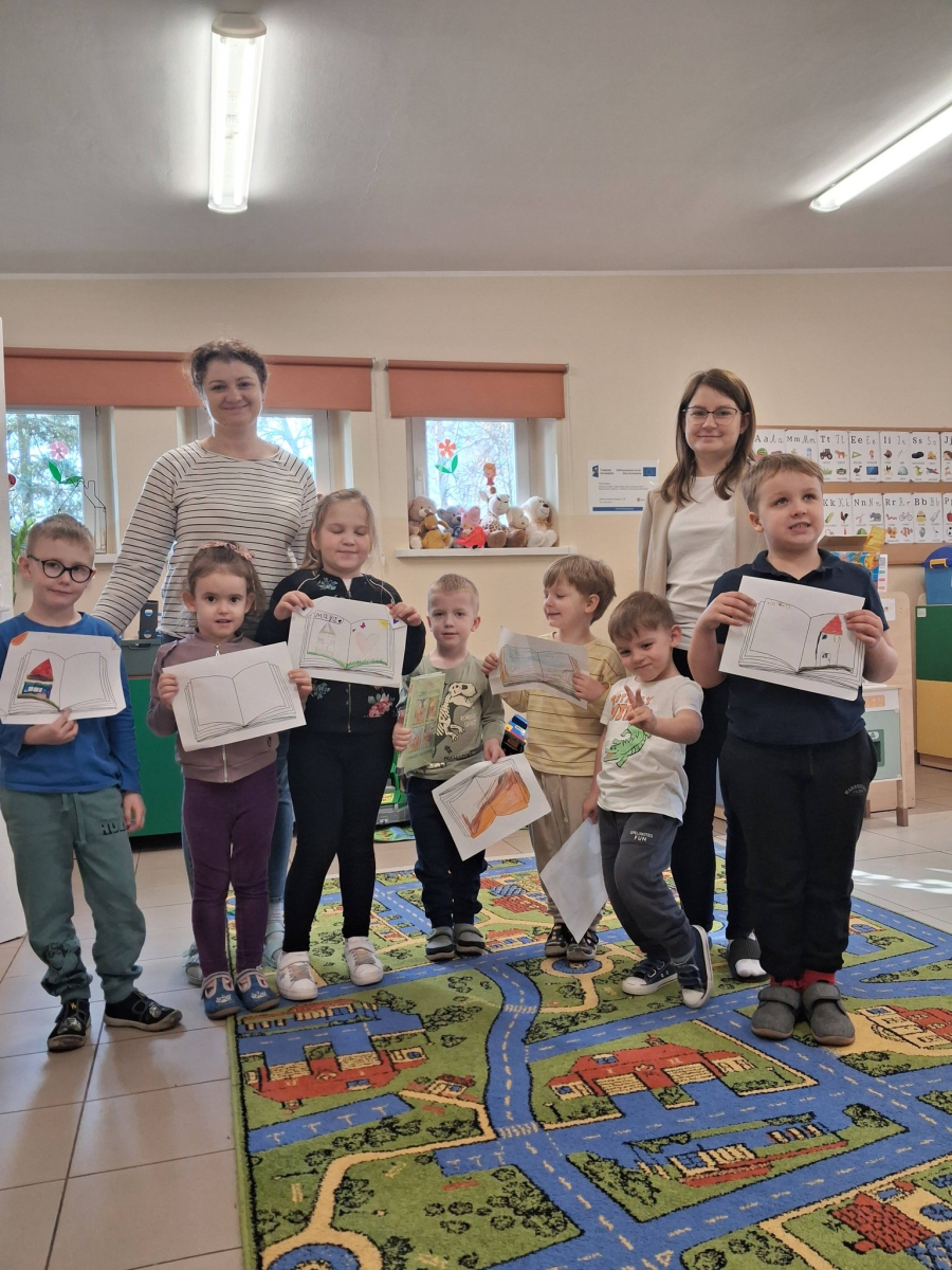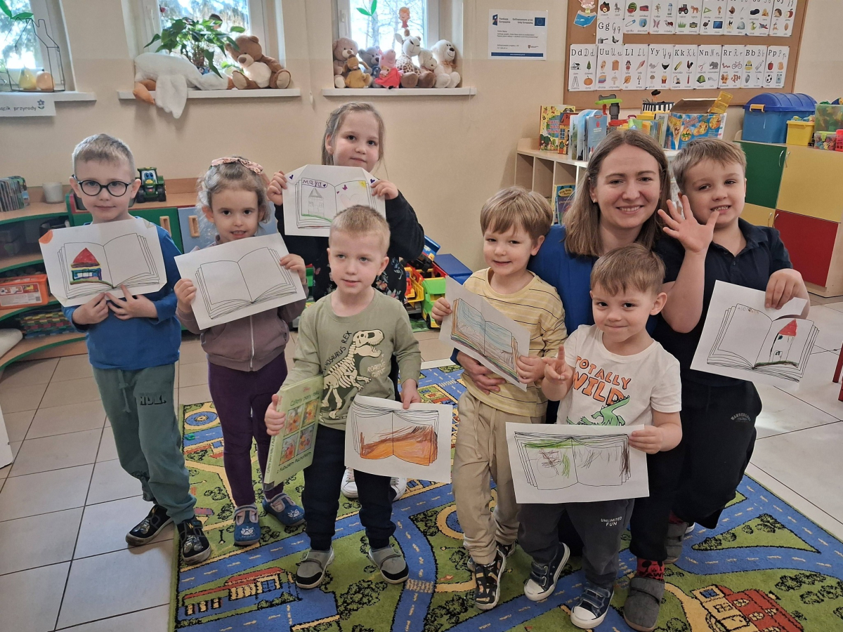 Na zakończenie zajęć bibliotecznych przedszkolaki miały za zadanie stworzyć własną książkę. W związku z tym, że na początku marca obchodzimy Dzień Pisarza i Pisarki dzieci wcieliły się w rolę twórców literackich.
