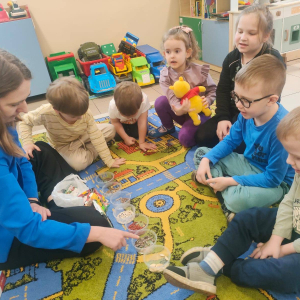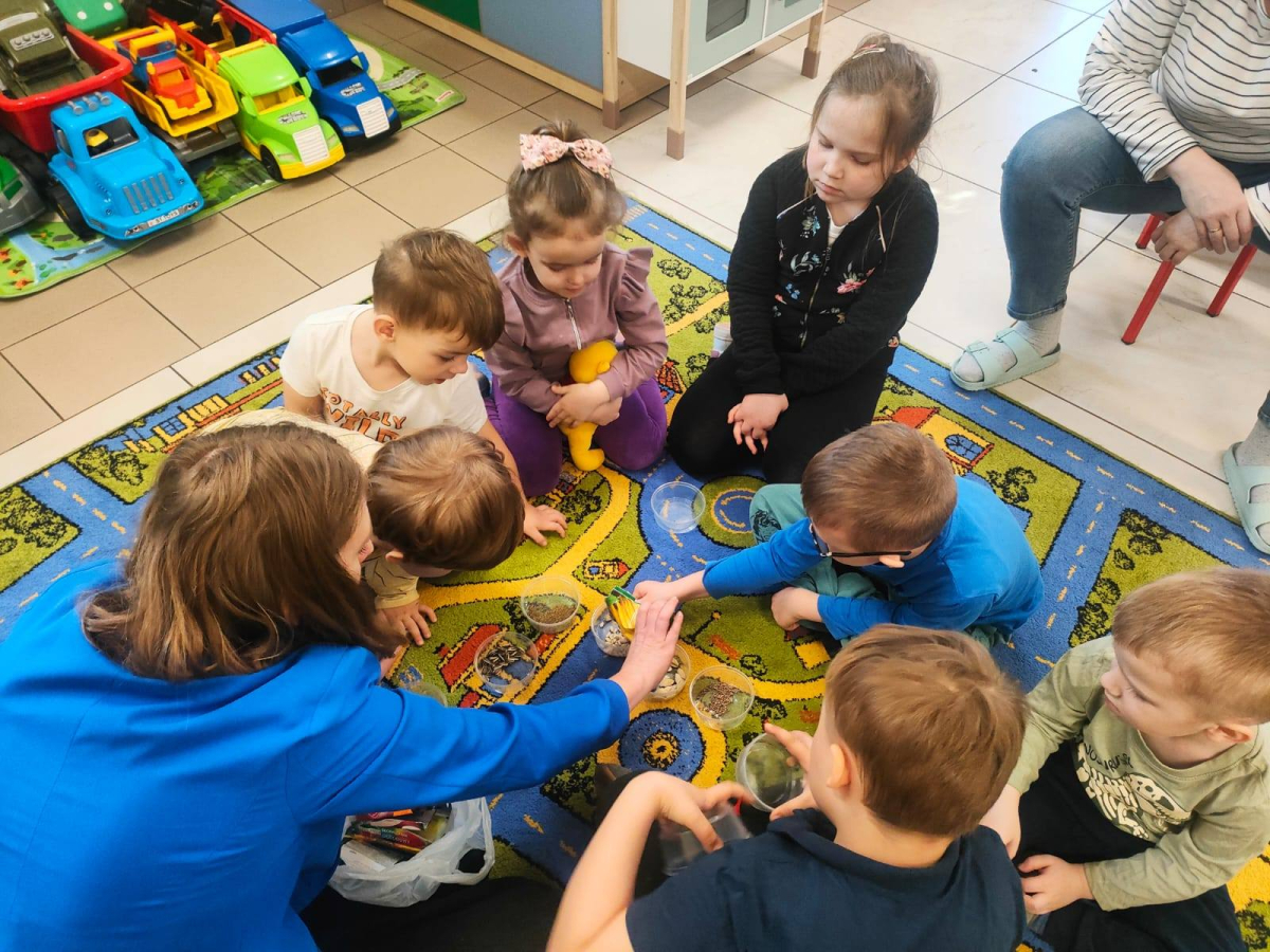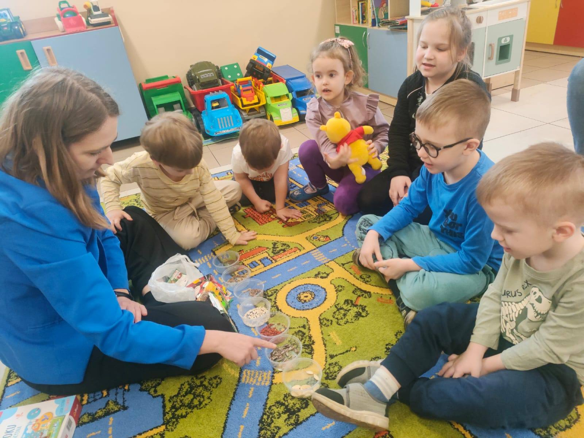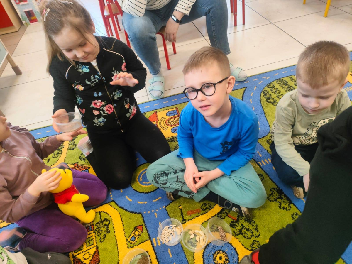 Podczas spotkania dyskutowaliśmy o zakładaniu i prowadzeniu własnego ogródka. Przedszkolaki miały okazję przyjrzeć się nasionom i dowiedzieć się w jaki sposób z małego nasionka może wyrosnąć roślina.