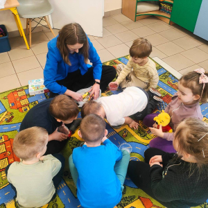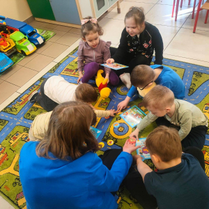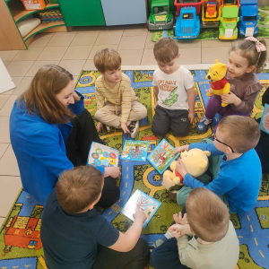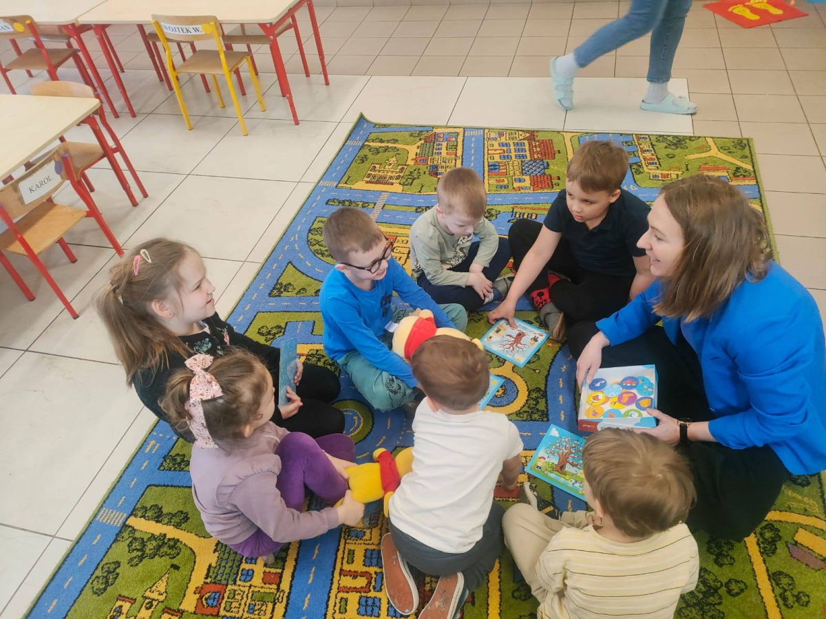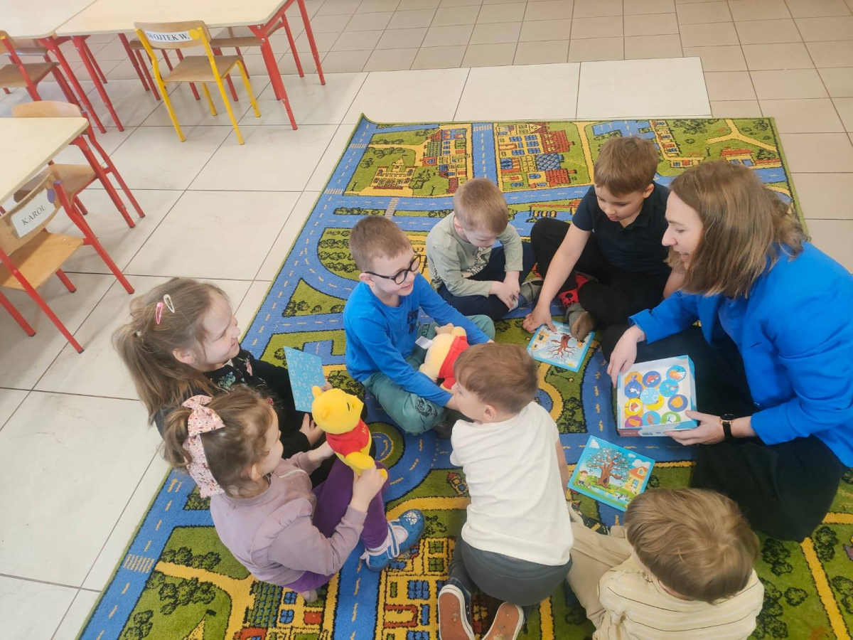 17.03 byliśmy z wizytą w oddziale przedszkolnym przy Szkole Podstawowej w Koszutach. Dzieci wysłuchały opowiadania o wiośnie z serii z Kubusiem Puchatkiem. Rozmawialiśmy o pierwszych oznakach wiosny w przyrodzie. Dzieci z dużym entuzjazmem przystąpiły do gry edukacyjnej Pory Roku.