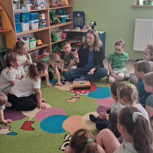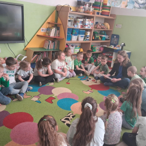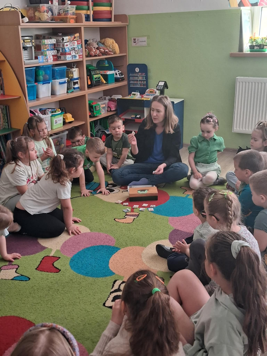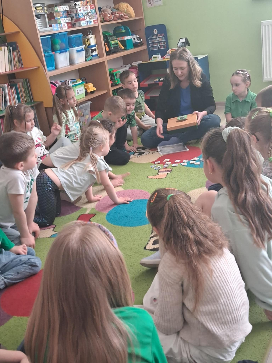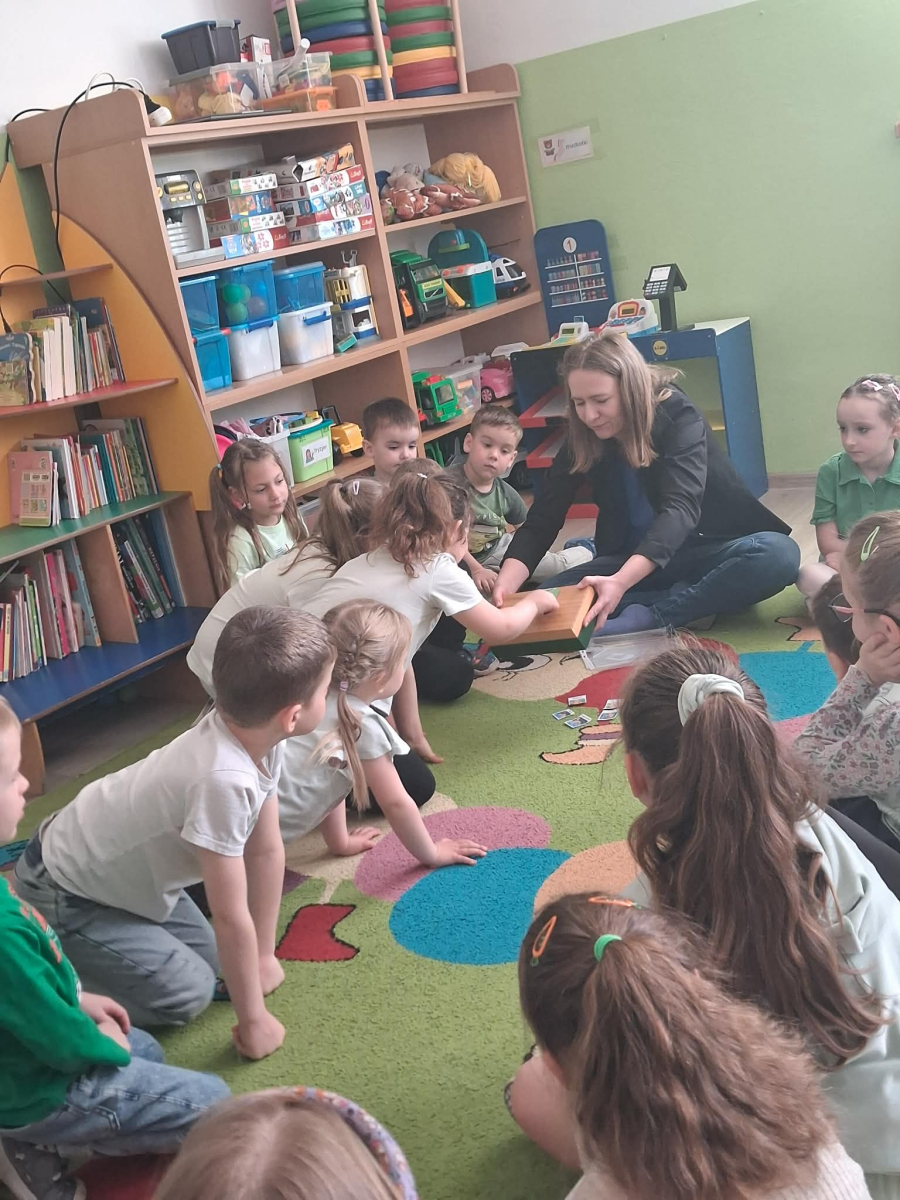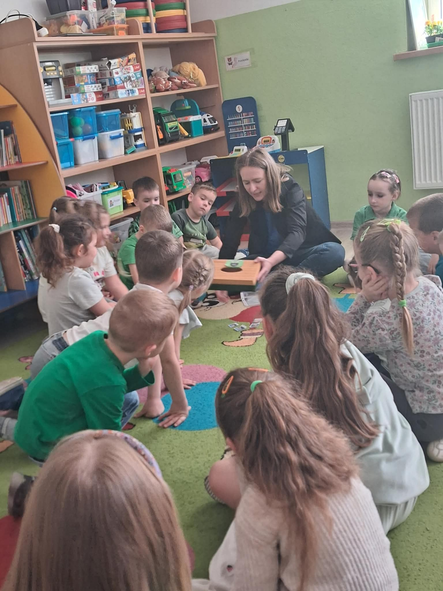 22.04 byliśmy z wizytą w Przedszkolu Gminnym w Młodojewie. Podczas spotkania wysłuchały opowieści pt. "Kapibara. Ach ten strach!". To pełna ciepła i rymu opowieść o tym, że każdy z nas ma w sobie moc. Trzeba tylko w nią uwierzyć i czasami poprosić o pomoc. Strachem warto się dzielić, ponieważ łatwiej go oswoić, a wsparcie innych osób potrafi zdziałać cuda.Podczas spotkania dowiedzieliśmy się czym jest strach. Rozmawialiśmy o tym, czego się boimy i jak możemy sobie poradzić ze strachem. Dzieci uczestniczyły z dużym zainteresowaniem w grze edukacyjnej, która składała się z potwora strachu, kart strachu i kart supermocy odwagi. Celem gry było pokazanie, że strach można oswoić. Na zakończenie zajęć bibliotecznych przedszkolaki pokolorowały odważną kapibarę.