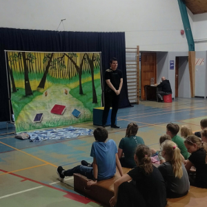 Spektakl Teatru Maska z Krakowa "Wyobraźnia czeka ukryta w bibliotekach", Animacje i wariacje, w poszukiwaniu zaginionej książki