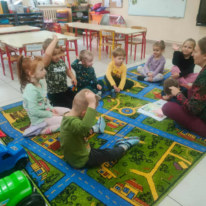 W ramach Ogólnopolskiego Dnia Głośnego Czytania odbyło się spotkanie w oddziale przedszkolnym w Szkole Podstawowej w Koszutach. Rozmawialiśmy o walorach czytania i o tym, że warto odwiedzać naszą bibliotekę. Dzieci wysłuchały baśni o poznańskich koziołkach. Z zaciekawieniem rozwiązywały zagadkę. Na zakończenie zajęć przedszkolaki pokolorowały ilustrację, która przedstawiała poznańskie koziołki. Dziękujemy za sympatyczne przyjęcie. Dziękujemy Pani Arlecie i Pani Patrycji za możliwość przeprowadzenia spotkania.