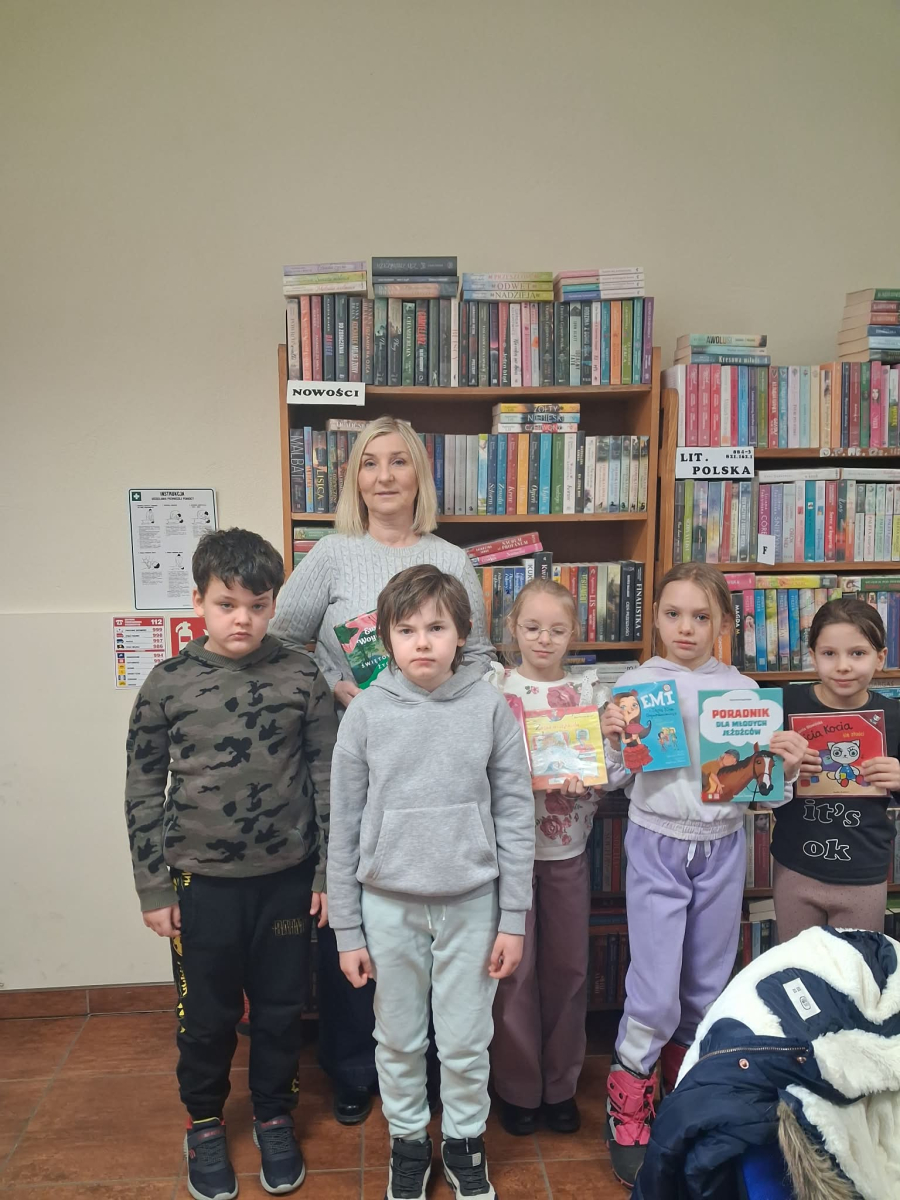 04.02. gościliśmy drugoklasistów ze Szkoły Podstawowej w Młodojewie wraz z wychowawczynią. Spotkanie w bibliotece nie mogło się odbyć bez głośnego czytania. Dzieci wysłuchały z dużą atencją bajki Anity Głowińskiej pt.„ Sporty zimowe”. Dzieci opowiadały o tym, że uwielbiają zimę. Można wtedy lepić bałwana, rzucać się śnieżkami, ale nie tylko. Zimą można także uprawiać sporty. Otwierając kolejne okienka w książce, razem z Kicią Kocią i Nunusiem poznaliśmy różne rodzaje sportów zimowych: skoki narciarskie, łyżwiarstwo, slalom, hokej i wiele innych. Następnie uczestnicy spotkania mieli do wykonania zadanie odnośnie bezpiecznych ferii. Dzieci wyszły z biblioteki nie tylko z uśmiechem na twarzy, ale z wypożyczonymi książkami. Dziękujemy Pani Urszuli za przekazywanie zamiłowania do czytelnictwa. Dziękujemy za miłe spotkanie- liczymy na dalszą współpracę. Życzymy bezpiecznych i kreatywnych ferii. Zapraszamy ponownie.