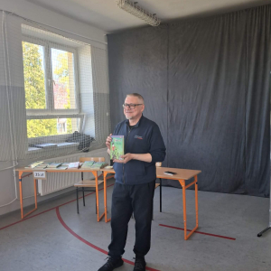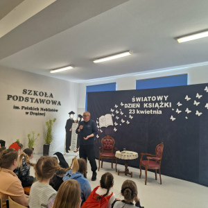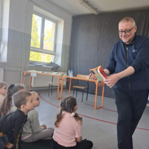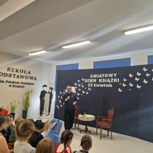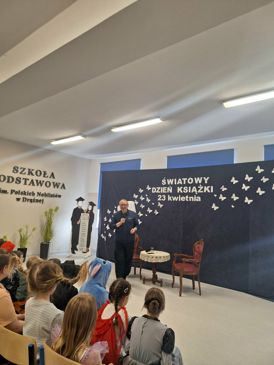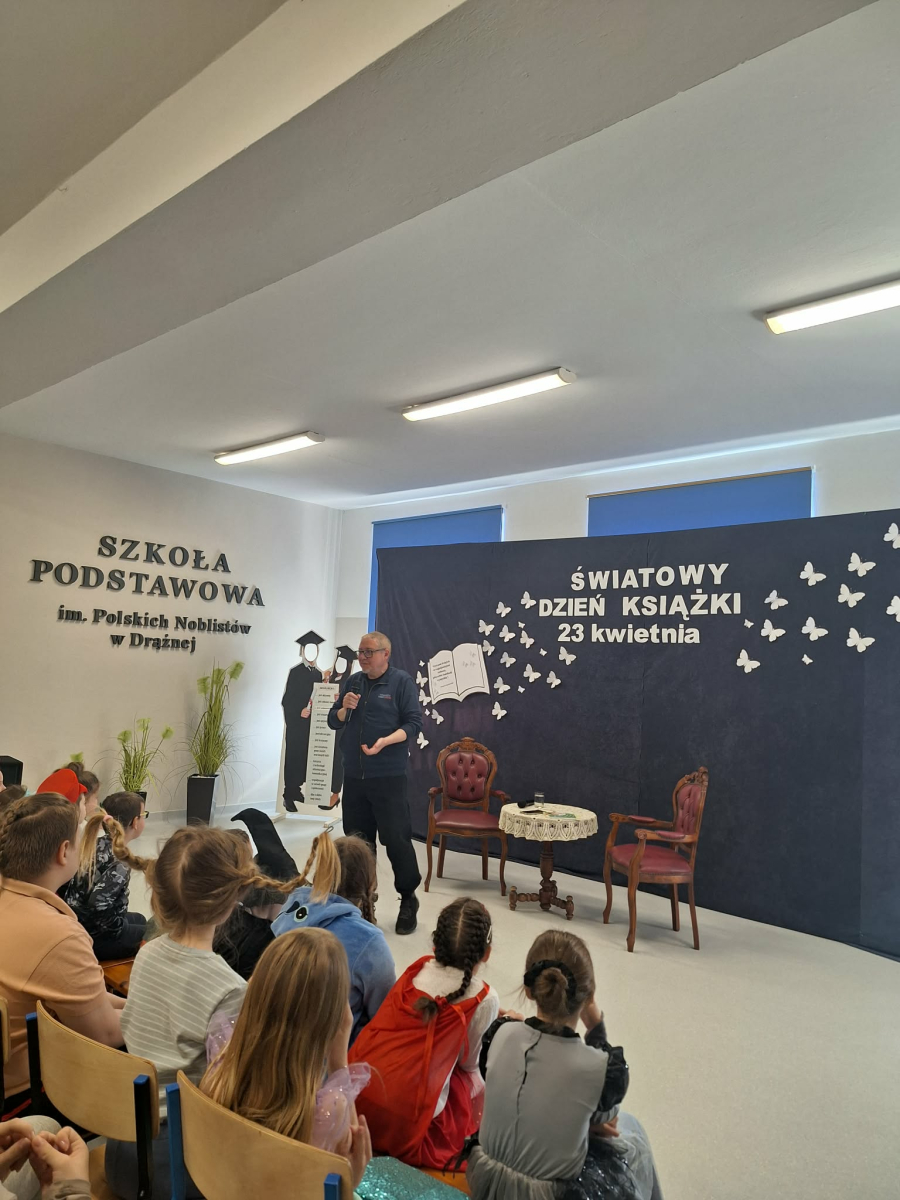 W ramach Światowego Dnia Książki odbyło się wyjątkowe spotkanie autorskie z Marcinem Pałaszem – pełne ciepła, uśmiechu i prawdziwych emocji. W spotkaniu udział wzięli uczniowie ze Szkoły Podstawowej w Drążnej oraz Zespołu Szkolno-Przedszkolnego w Młodojewie, którzy z niezwykłą uwagą i ciekawością wsłuchiwali się w każde słowo autora.