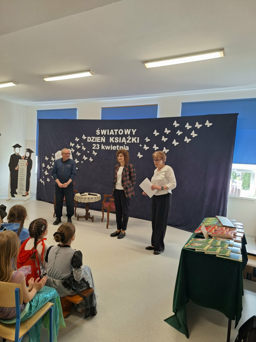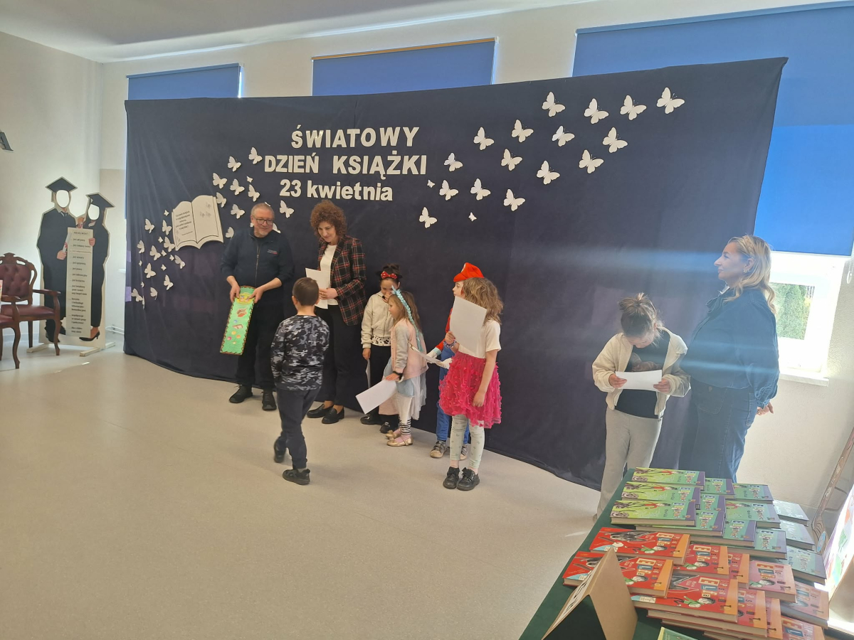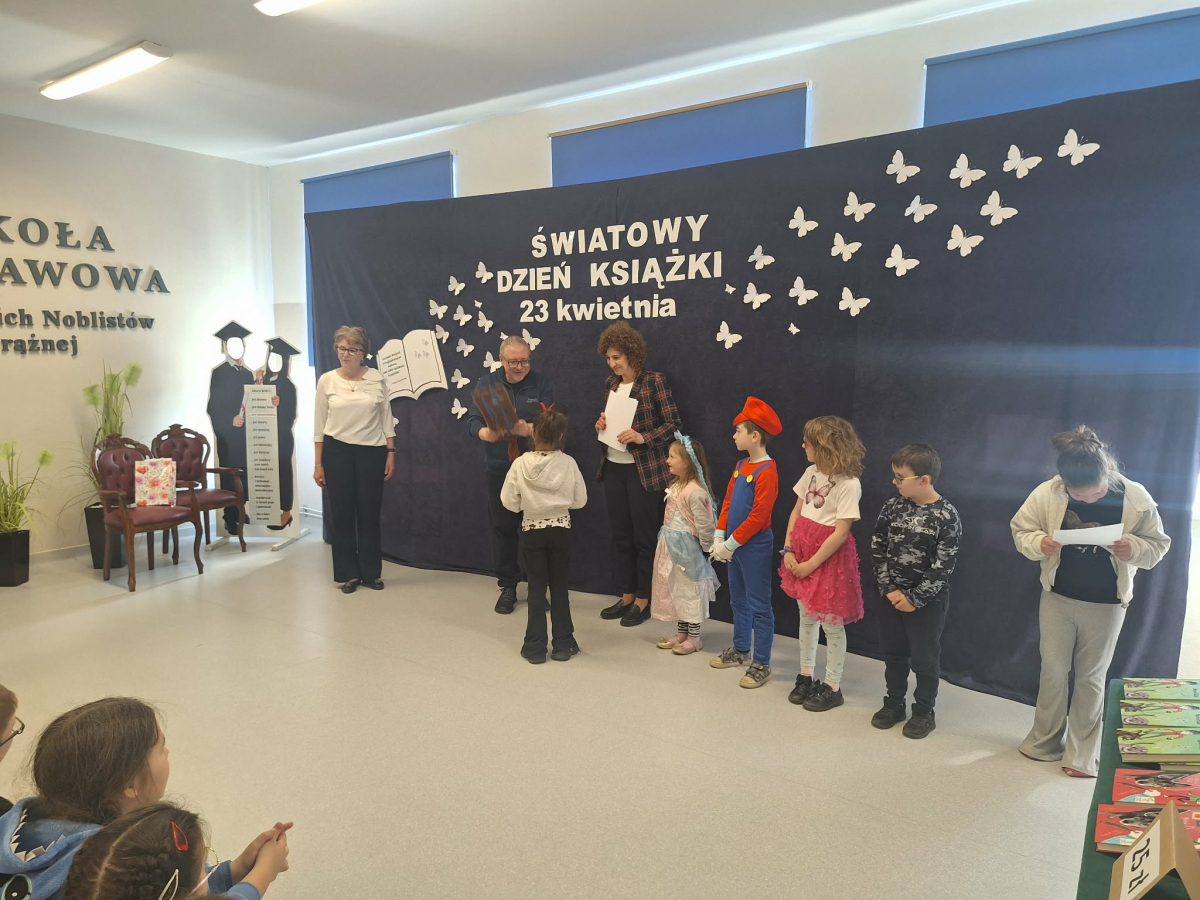 Mieliśmy również ogromną przyjemność wspólnie z Panem Marcinem uczestniczyć w uroczystym pasowaniu uczniów klas pierwszych na czytelników. To ważny i piękny moment, który symbolicznie otwiera najmłodszym drzwi do świata książek, wyobraźni i niezwykłych przygód.