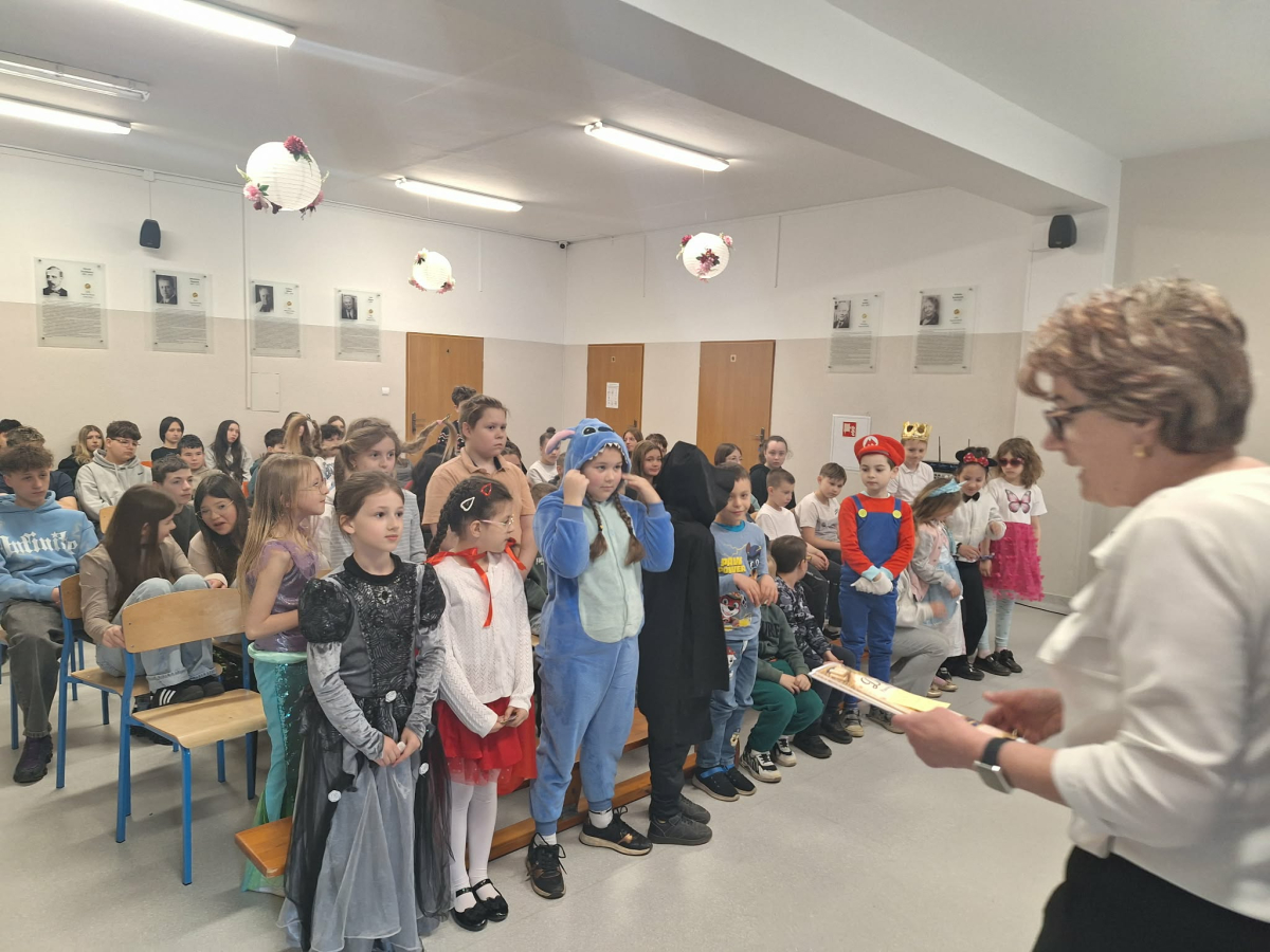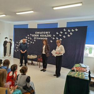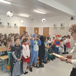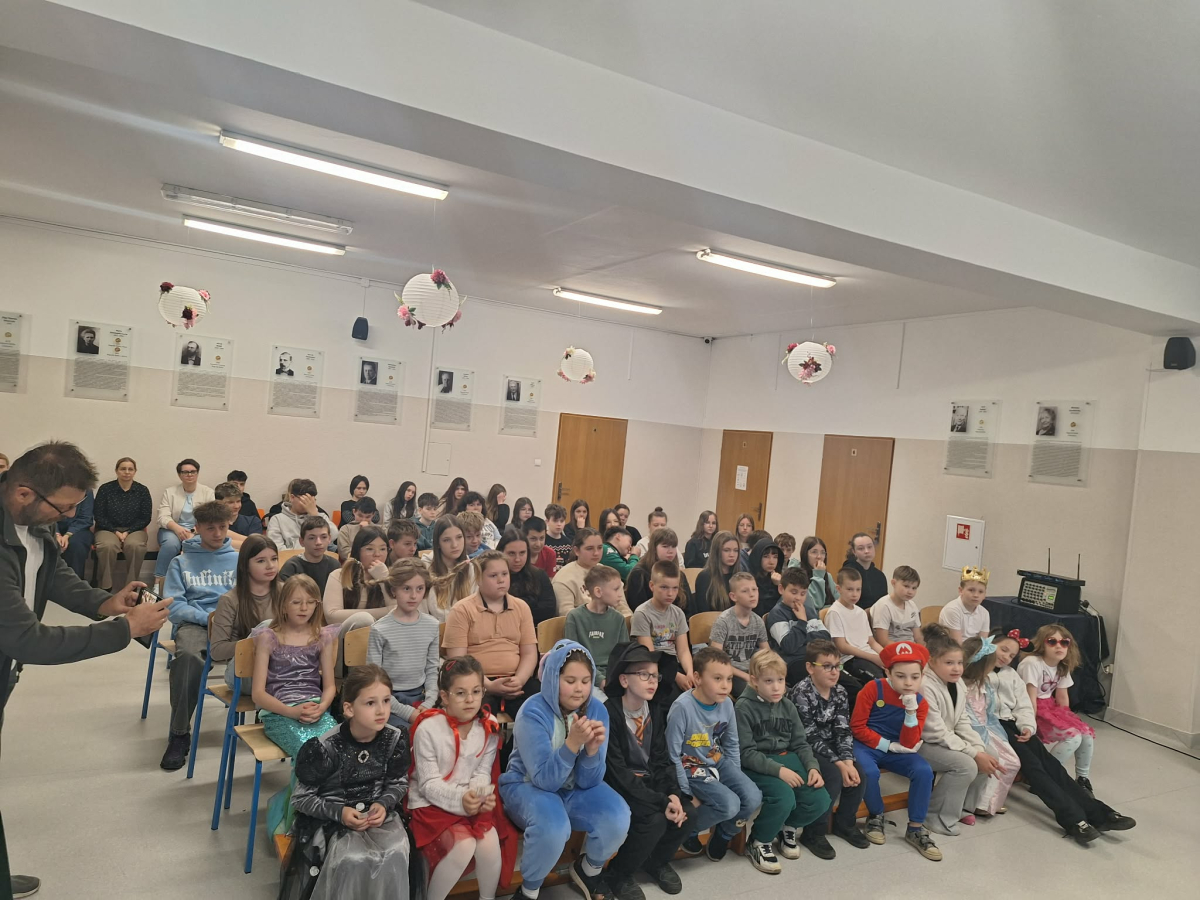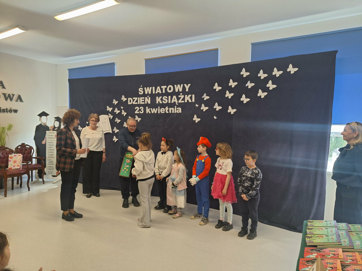Mieliśmy również ogromną przyjemność wspólnie z Panem Marcinem uczestniczyć w uroczystym pasowaniu uczniów klas pierwszych na czytelników. To ważny i piękny moment, który symbolicznie otwiera najmłodszym drzwi do świata książek, wyobraźni i niezwykłych przygód.