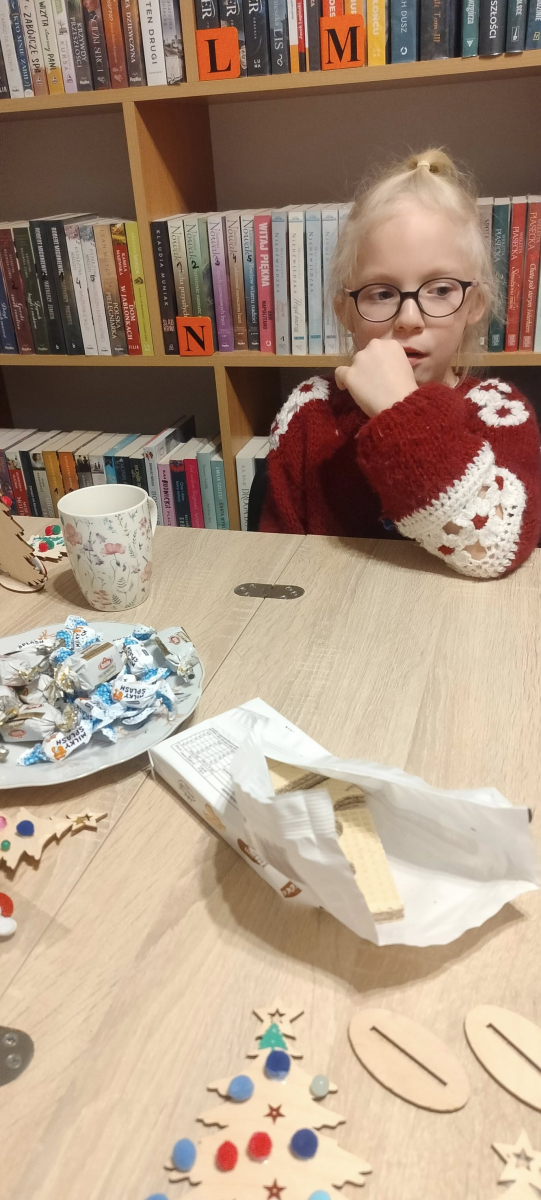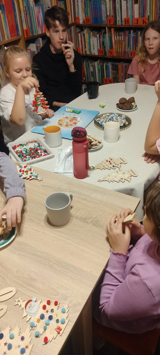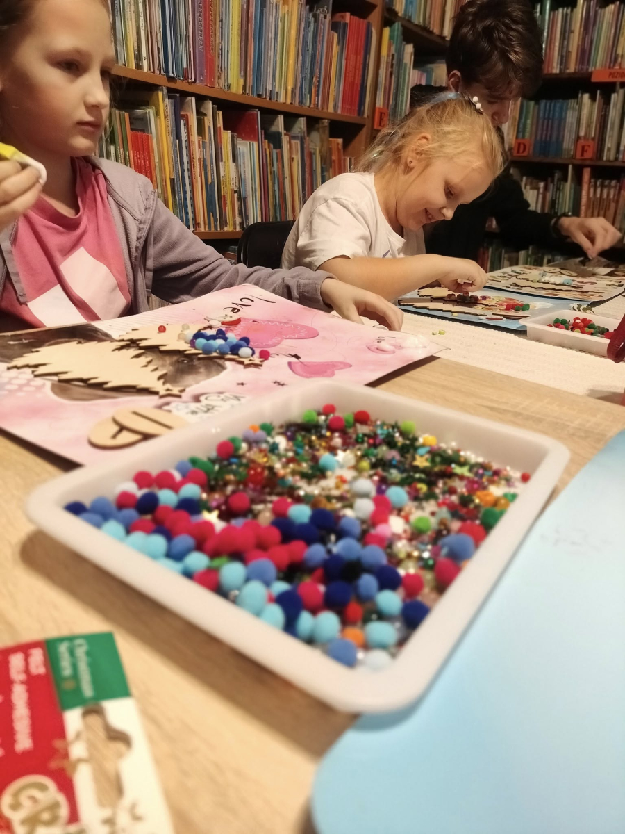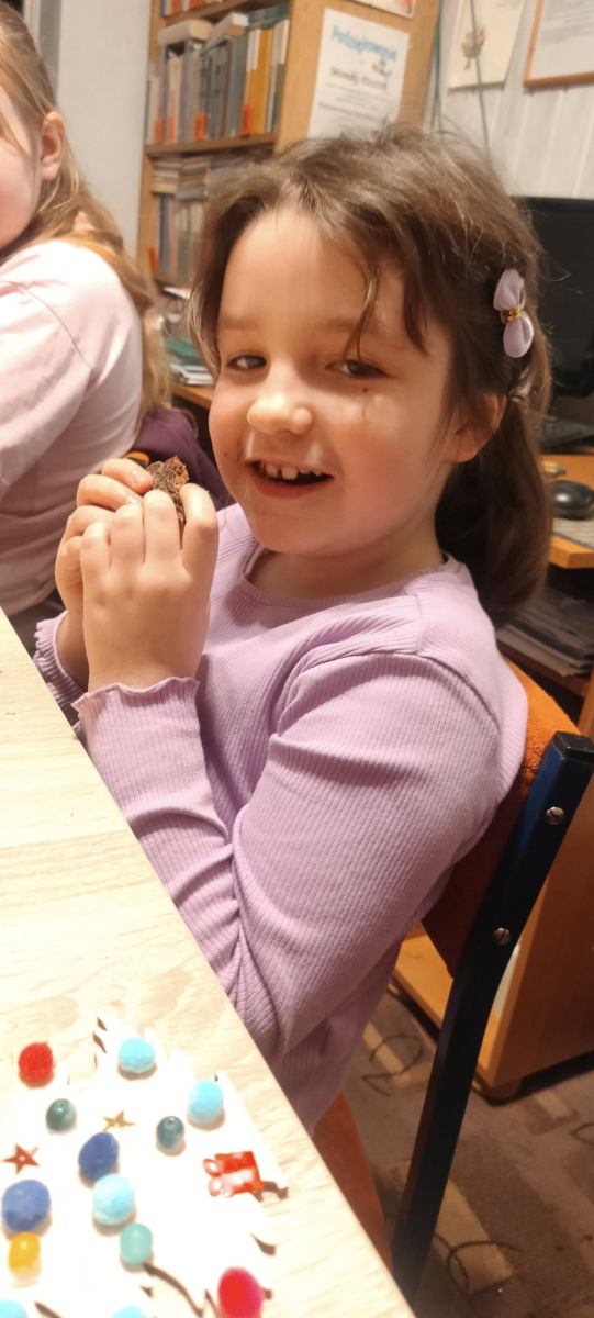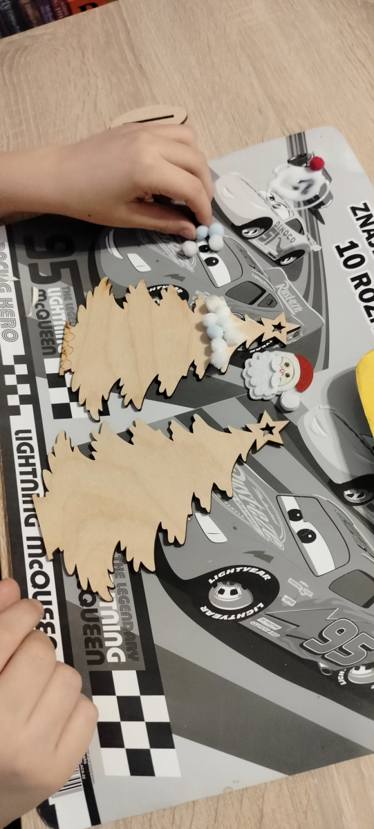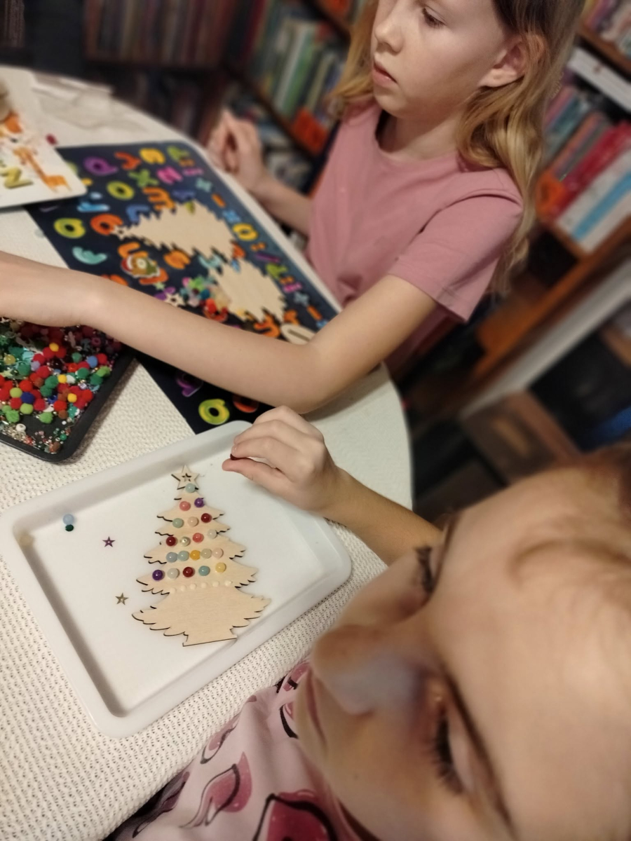 Dzisiejsze spotkanie upłynęło nam w świątecznej atmosferze. Podczas warsztatów dzieci własnoręcznie ozdobiły drewniane choinki, które zagoszczą w ich domach.