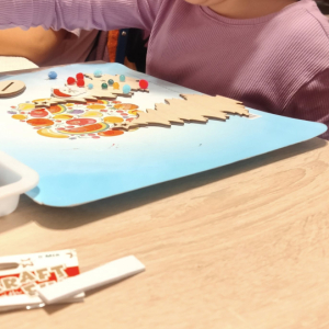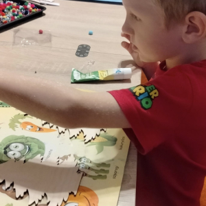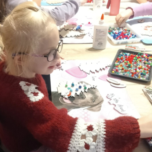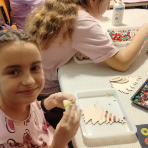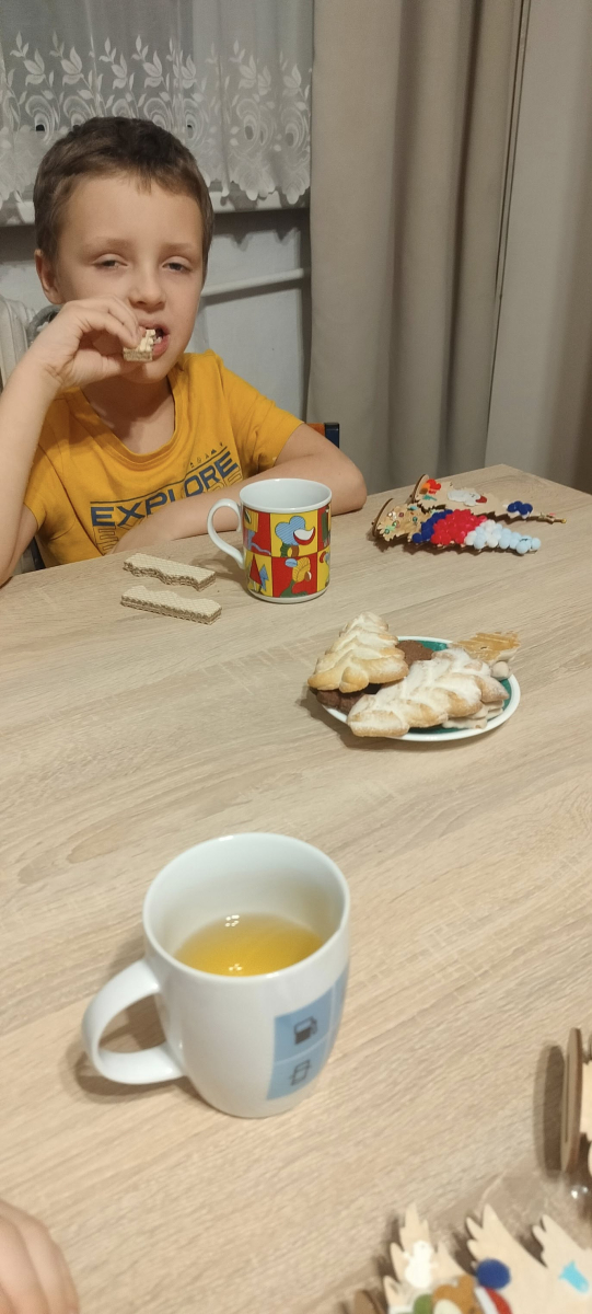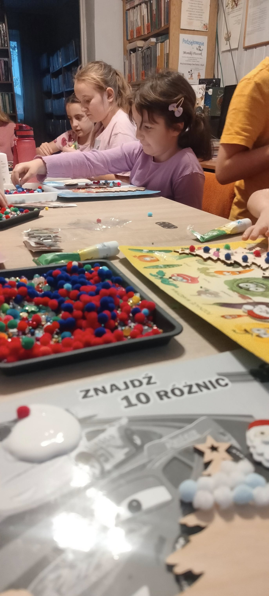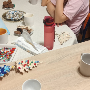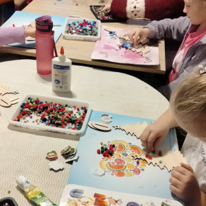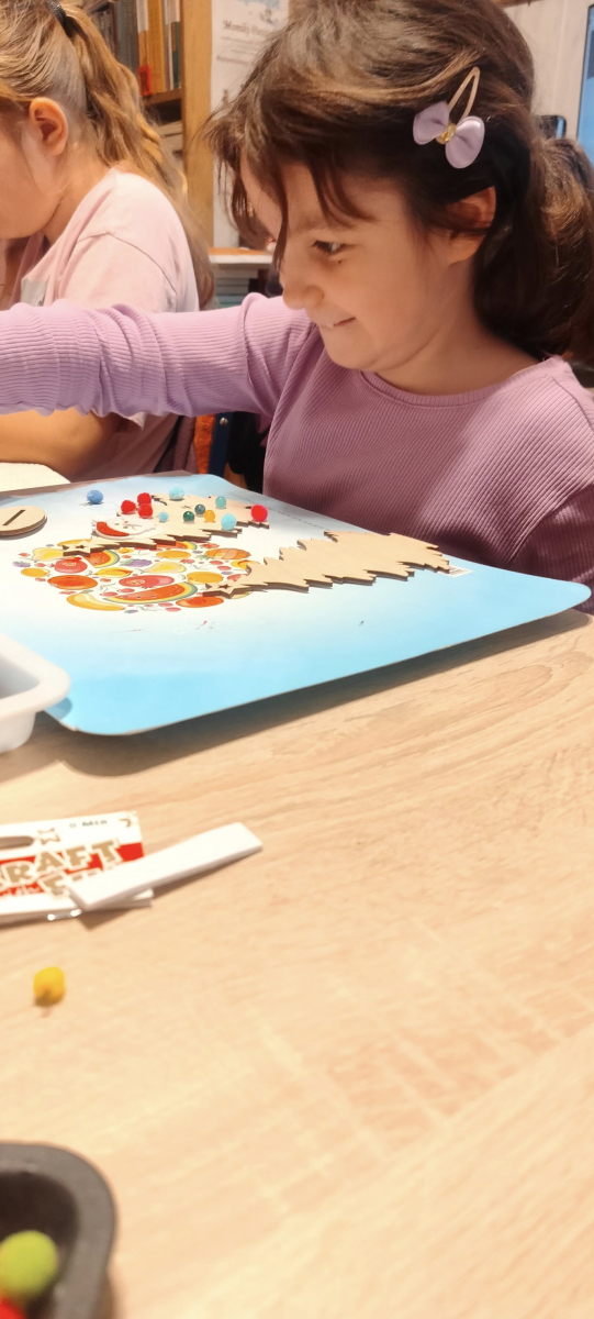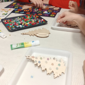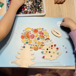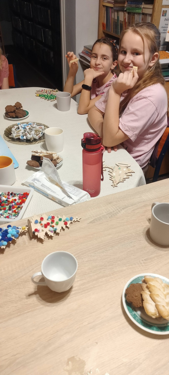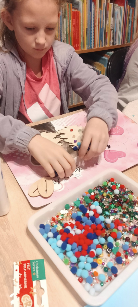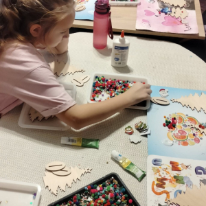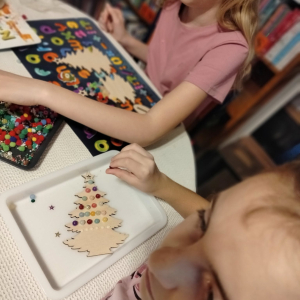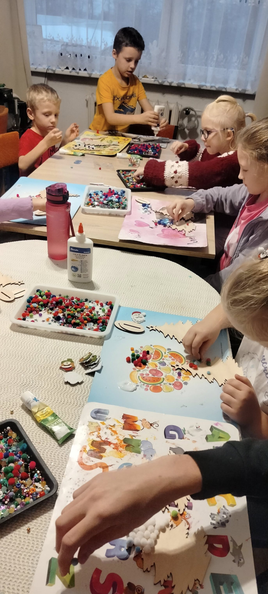 Dzisiejsze spotkanie upłynęło nam w świątecznej atmosferze. Podczas warsztatów dzieci własnoręcznie ozdobiły drewniane choinki, które zagoszczą w ich domach.