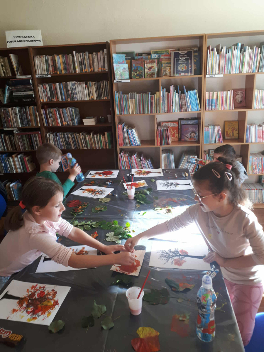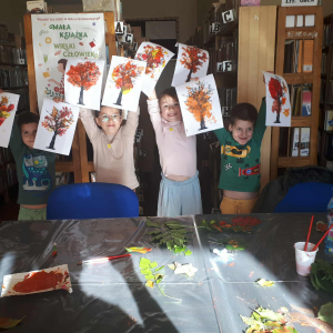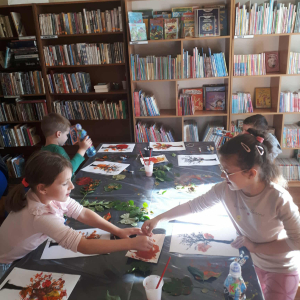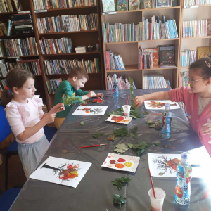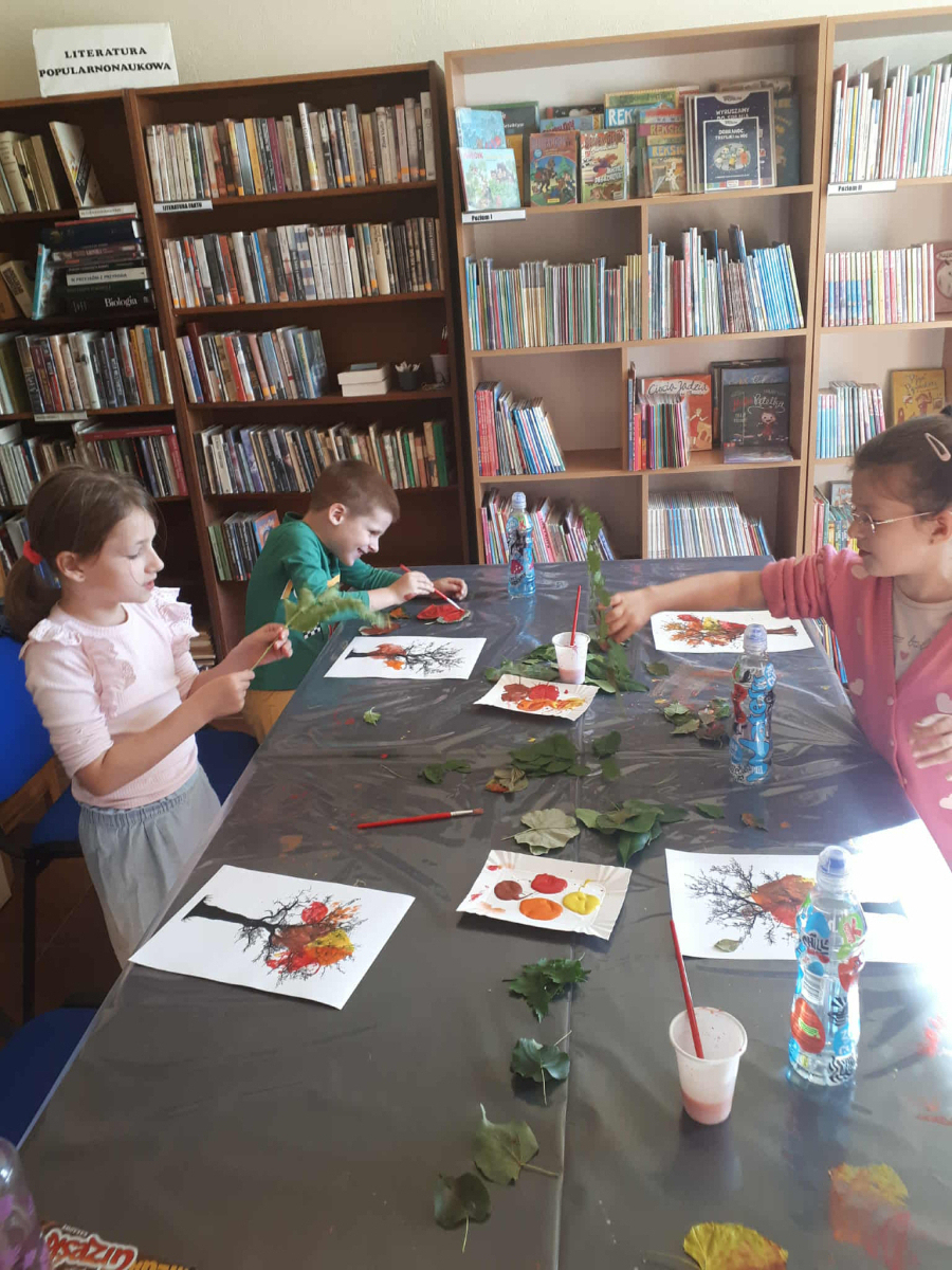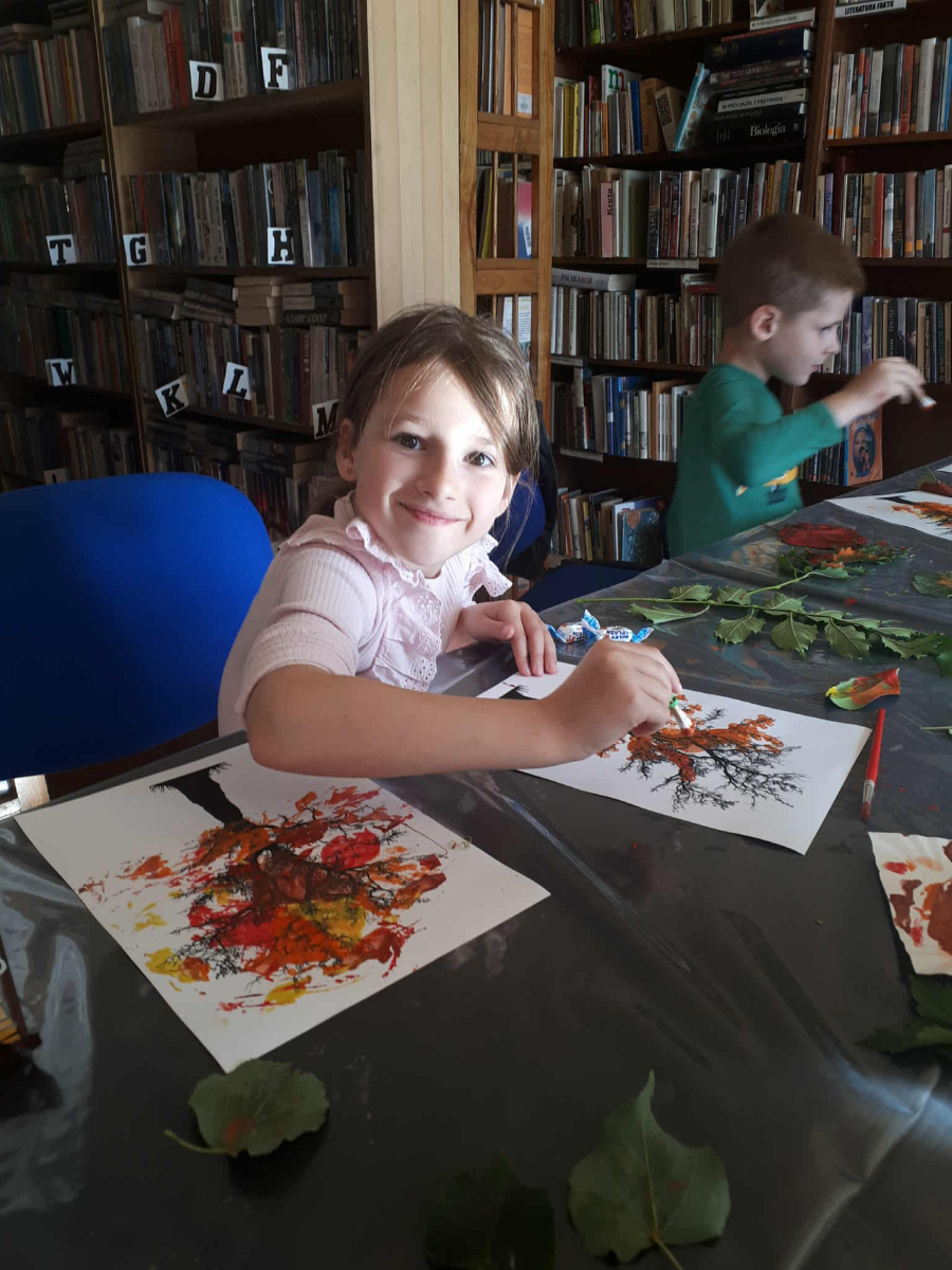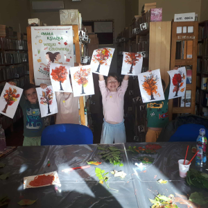 W filii w Młodojewie druga grupa uczestniczyła w warsztatach z cyklu Twórcza Środa. Dzieci stworzyły ciekawe, jesienne kompozycje przy użyciu farb, liści i patyczków kosmetycznych.