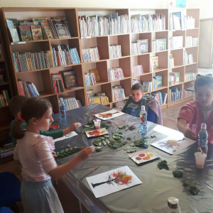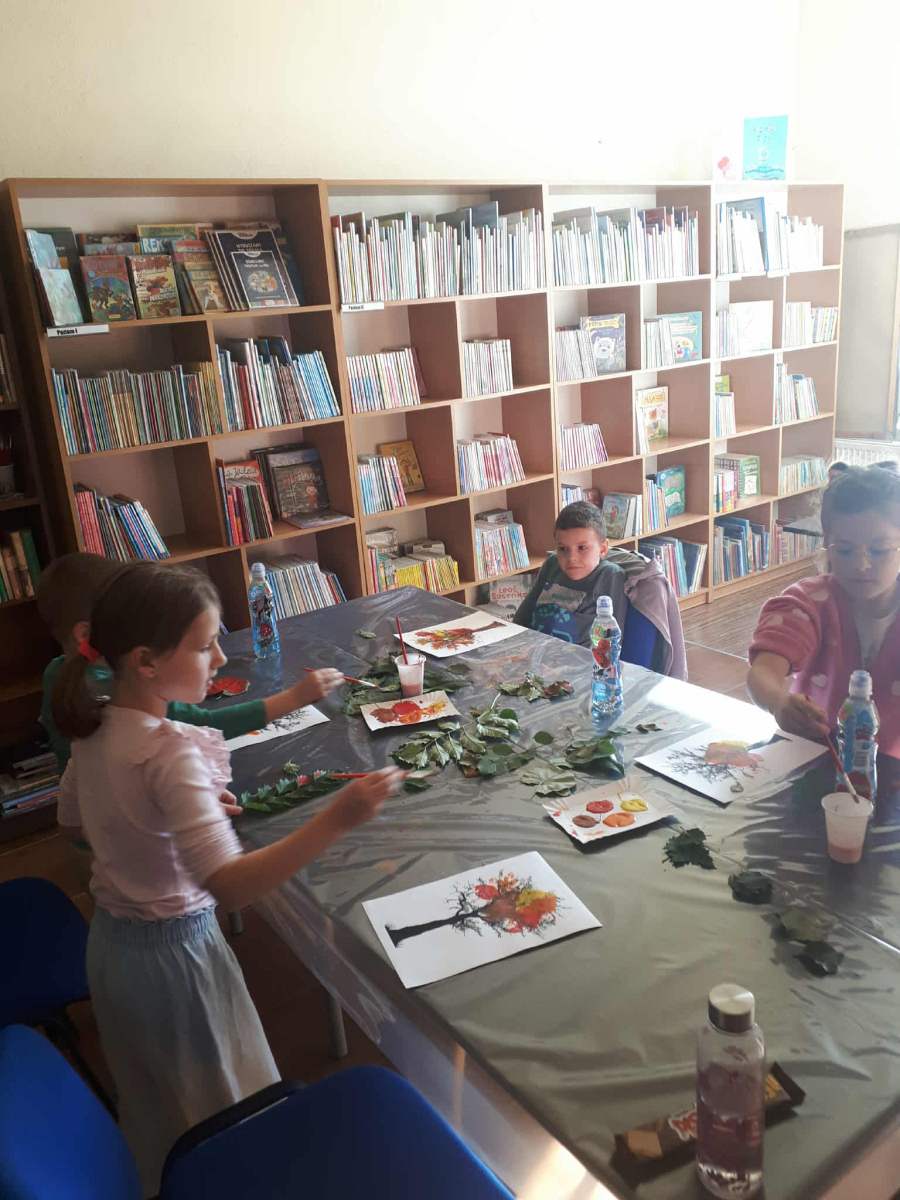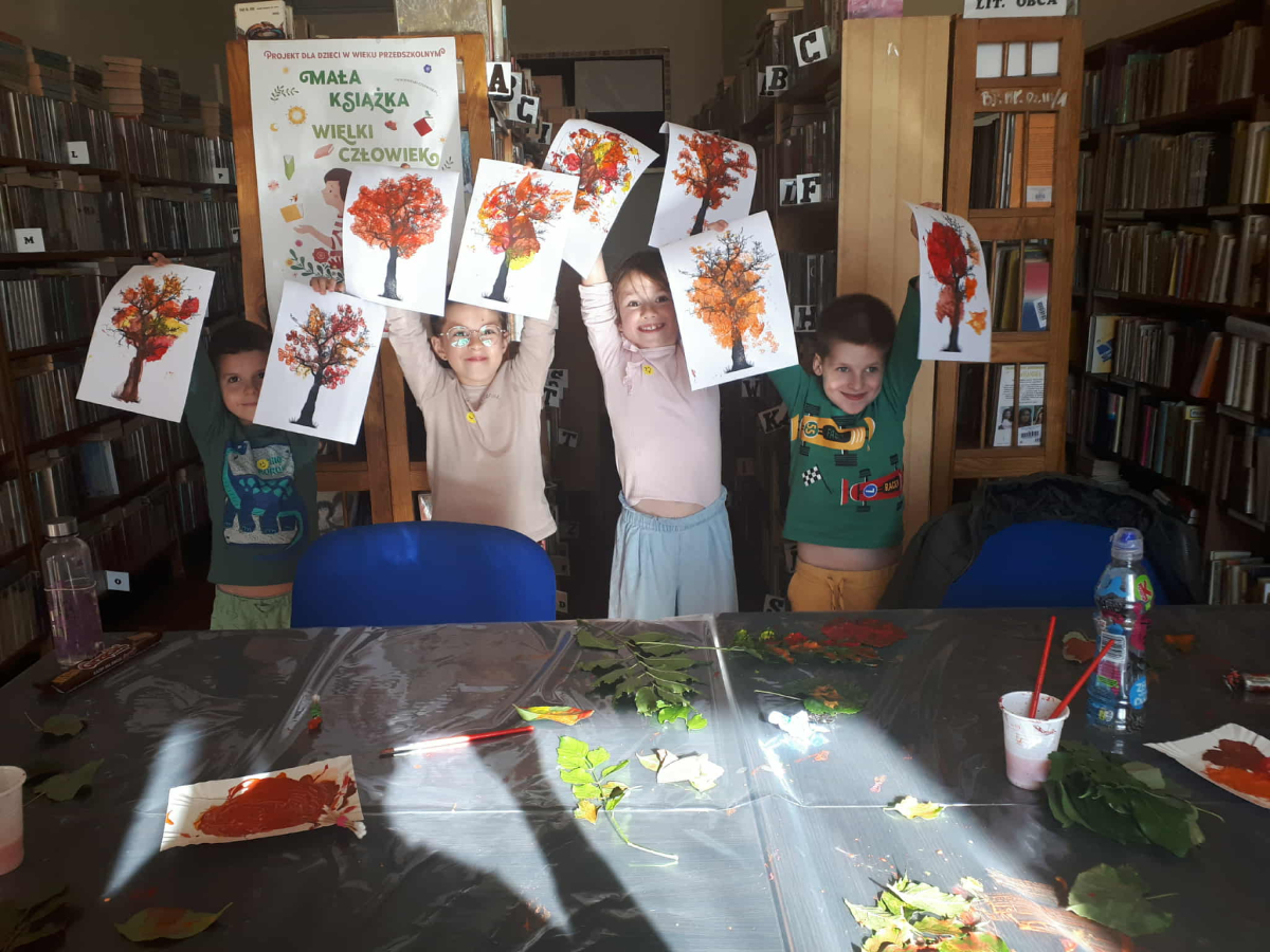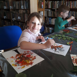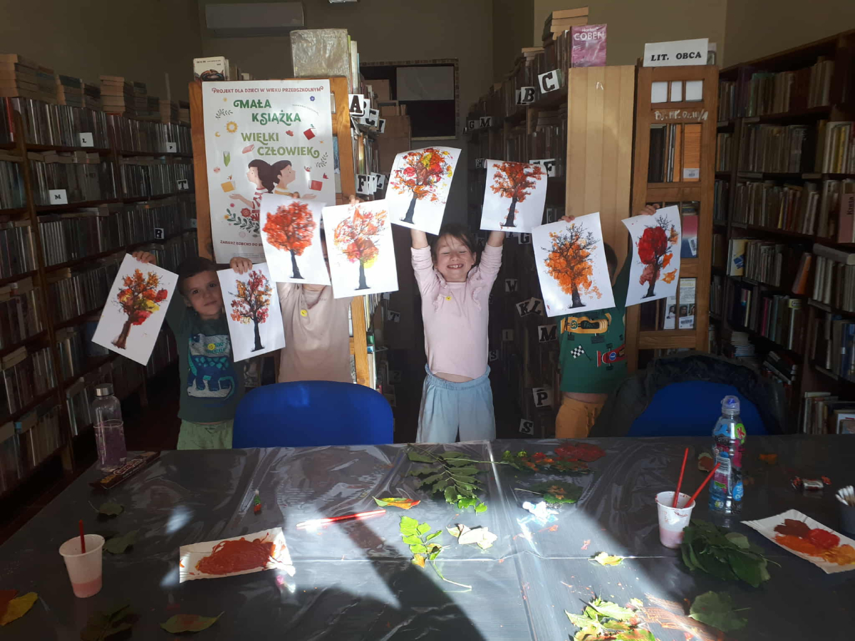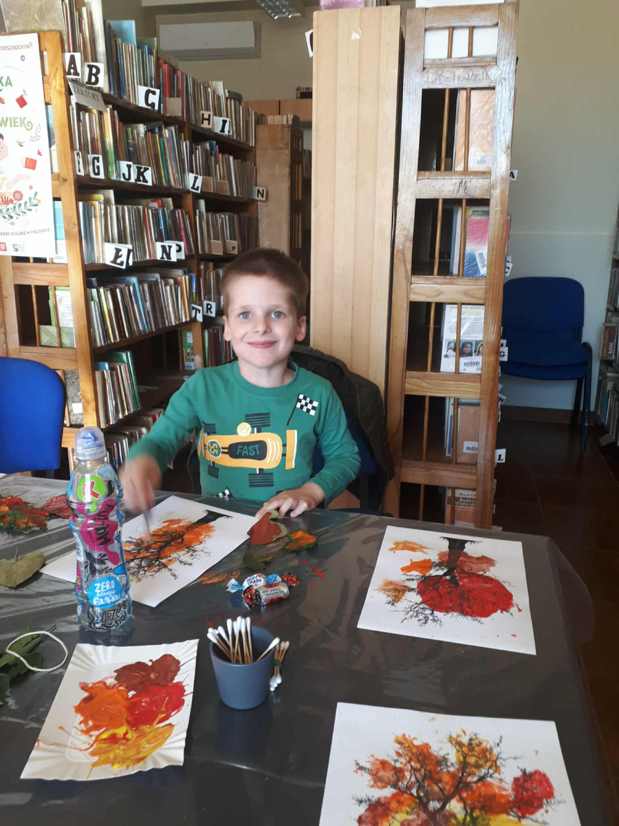 W filii w Młodojewie druga grupa uczestniczyła w warsztatach z cyklu Twórcza Środa. Dzieci stworzyły ciekawe, jesienne kompozycje przy użyciu farb, liści i patyczków kosmetycznych.