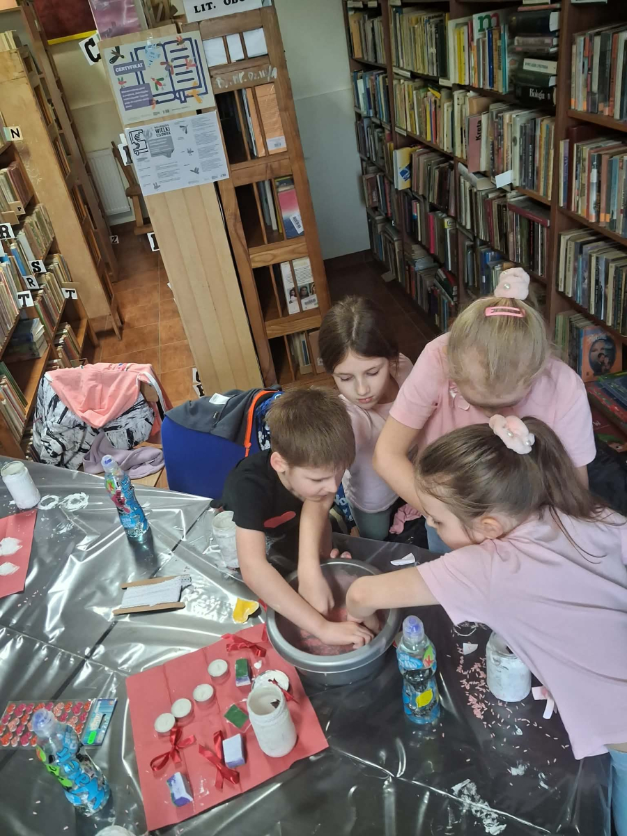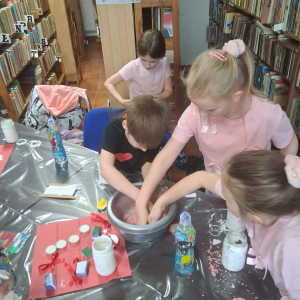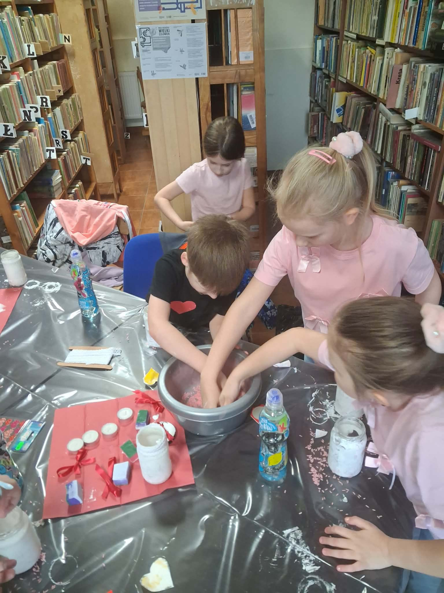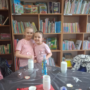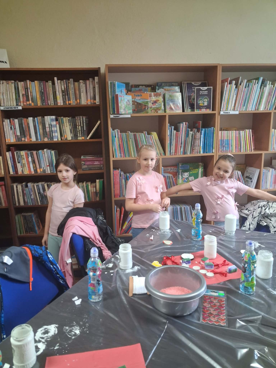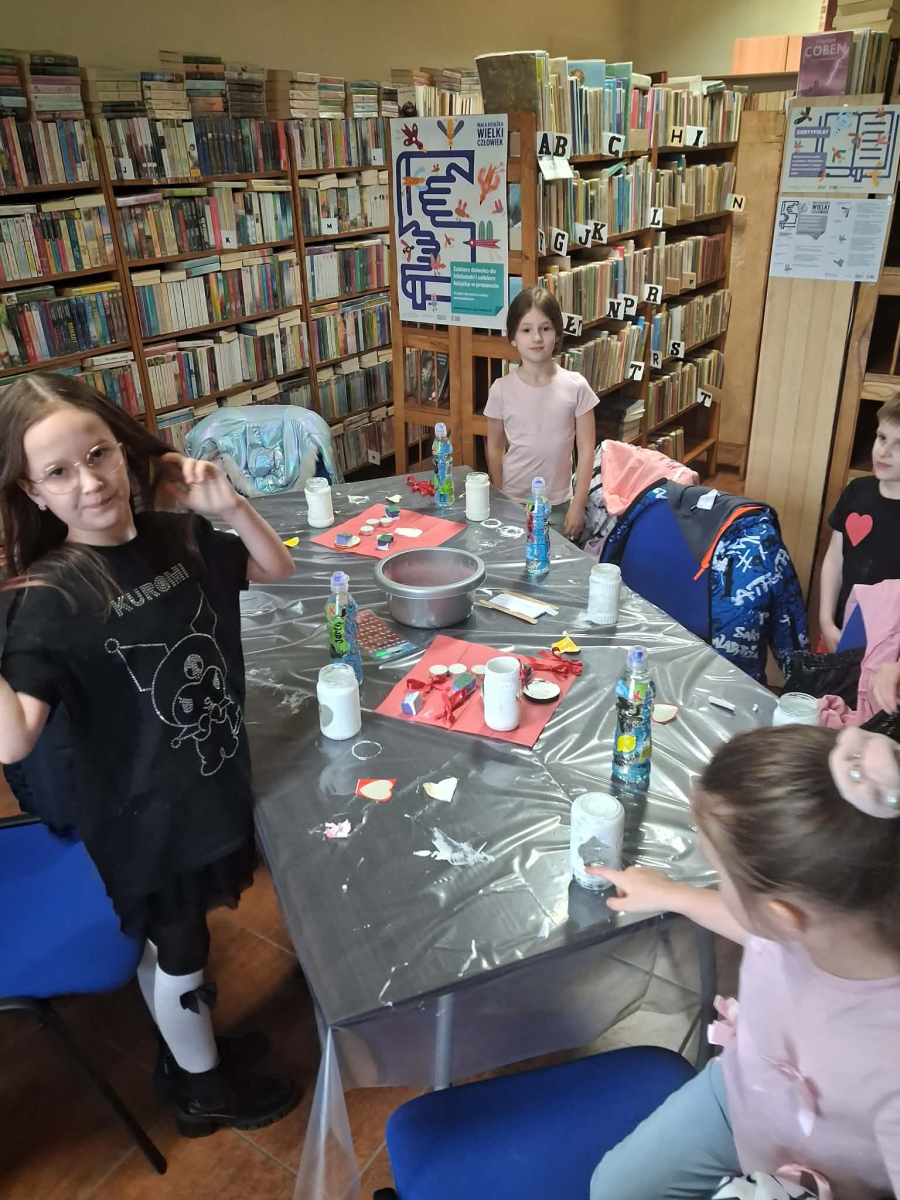 11.02 w filii Młodojewie odbyły się walentynkowe warsztaty, które wprowadziły nas w ciepłą i miłą atmosferę. Lampiony walentynkowe wykonane przez dzieci powstały z pomalowanych przez nie słoików. Dzieci z ogromnym zaangażowaniem malowały szkło białą farbą. Uczestnicy warsztatów tworzyli serduszka, własne i kreatywne kompozycje na słoikach.