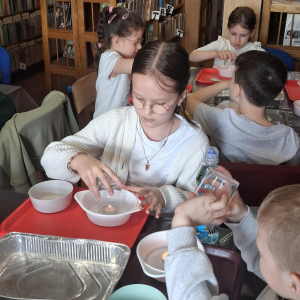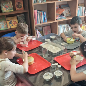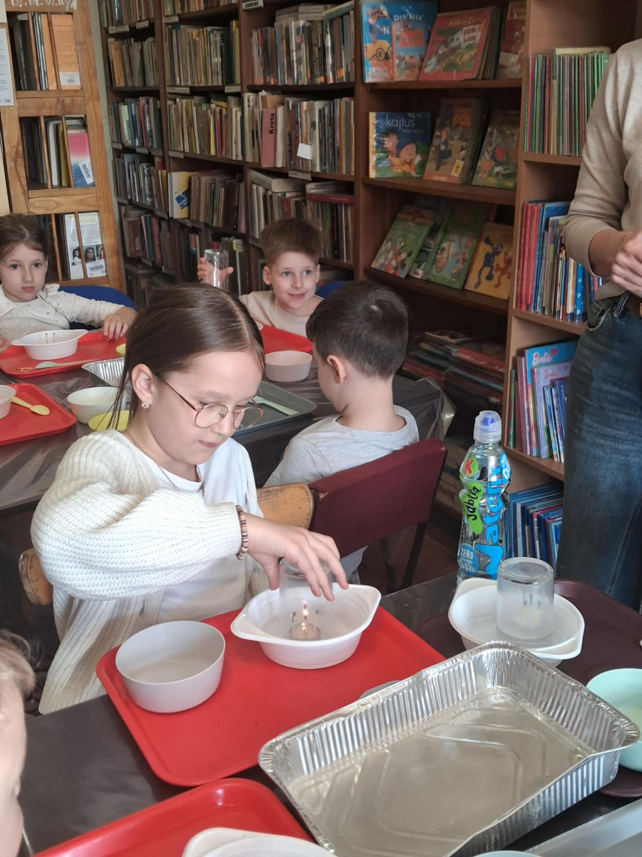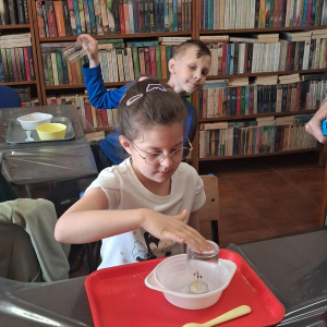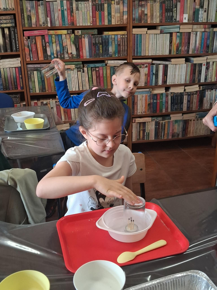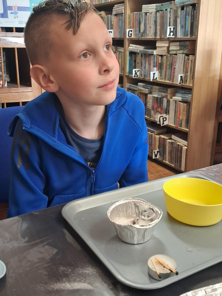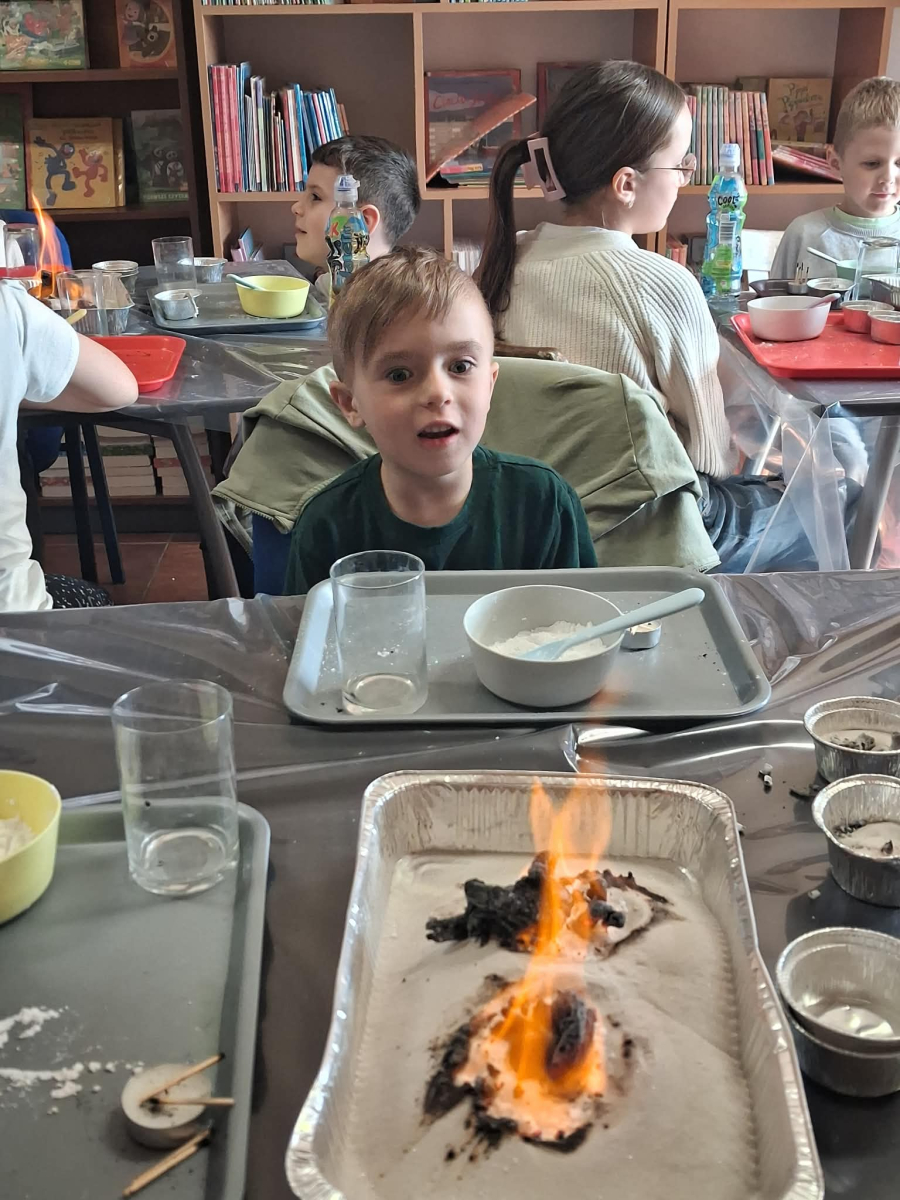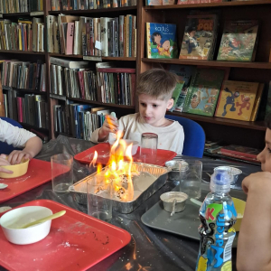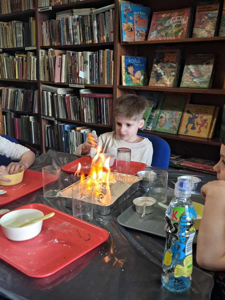 22.04 w filii w Młodojewie odbyły się wyjątkowe warsztaty związane z wodą i ogniem. Te dwa żywioły od wieków inspirują opowieści, legendy i baśnie. Podczas spotkania rozmawialiśmy o baśniach i bajkach, w których miały swój udział woda i ogień. Dzieci mogły eksperymentować z różnymi substancjami chemicznymi pod czujnym okiem Pani Pauliny z Kids Lab. Uczestnicy warsztatów stworzyli dużego i małego smoka, który "ział" ogniem.