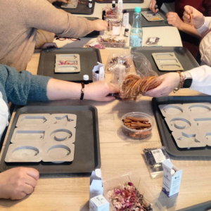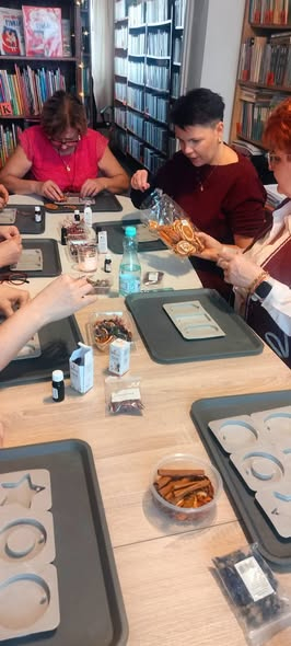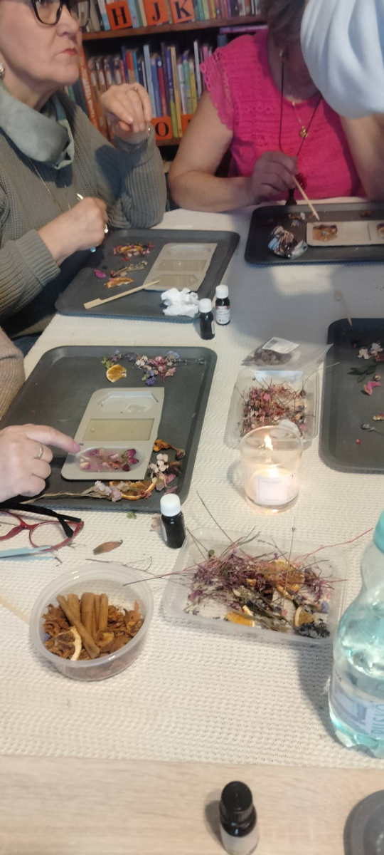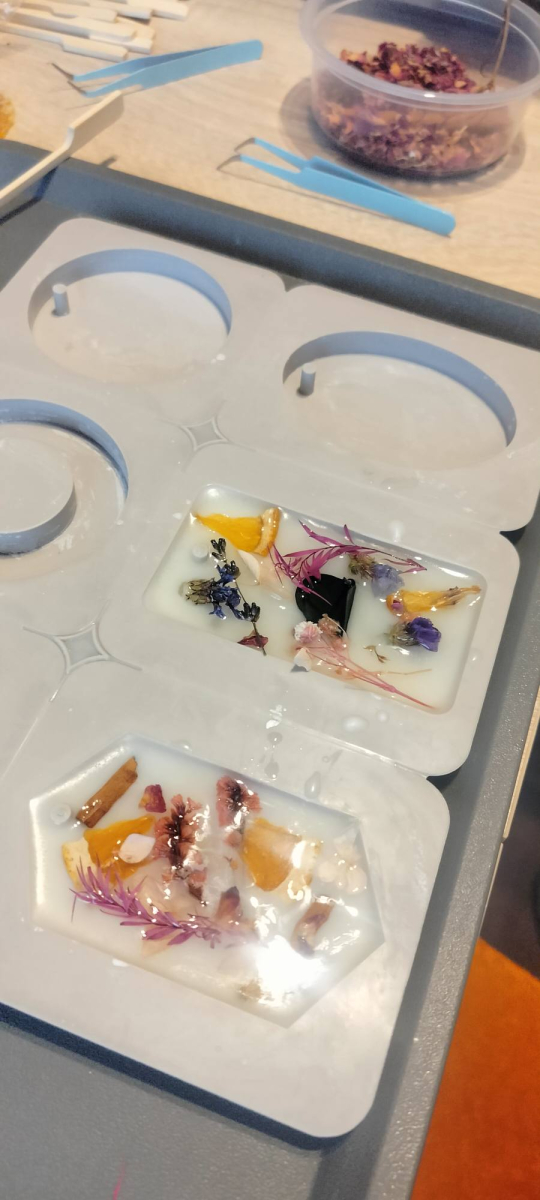 Podczas dzisiejszych warsztatów powstały przepiękne tabliczki florenckie- zapachowe zawieszki woskowe. Są one w całości wykonane z naturalnych składników takich jak wosk pszczeli, suszone rośliny, olejki eteryczne czy rafinowane masło shea. Tabliczki zapachowe oczywiście przepięknie pachną, ale oprócz tego stanowią śliczną ozdobę, gdziekolwiek się ich nie powiesi. Natomiast naturalna, pachnąca sól do kąpieli, którą uczestniczki samodzielnie wykonały podczas dzisiejszych warsztatów urozmaiciła Naszą codzienną pielęgnację. Było pachnąco, twórczo,a przede wszystkim w cudownym towarzystwie. Dziękujemy firmie KidsLab za wspaniałe warsztaty i cenną wiedzę w zakresie codziennej pielęgnacji skóry .